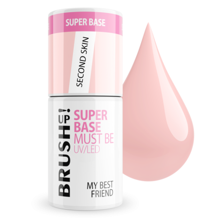 BRUSH UP! Base My Best Friend Second Skin – posilující a vyrovnávací báze pro přirozeně krásné nehty. Zlepšuje přilnavost, posiluje a vyrovnává povrch nehtové ploténky. Ideální pro přirozený vzhled, francouzskou manikúru a jako podklad pod gel lak.