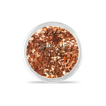 NeoNail chromové, třpytivé vločky, které na nehtech vytvoří třpytivý vícerozměrný efekt. Nejlepšího výsledku dosáhnete na černém podkladu.
