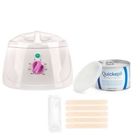 Sada obsahuje:- ohřívač vosku v plechovce 150 W- plechovka vosku 400 ml- voskovací pásky 20 ks- dřevěná špachtle na voskování – 5 ks