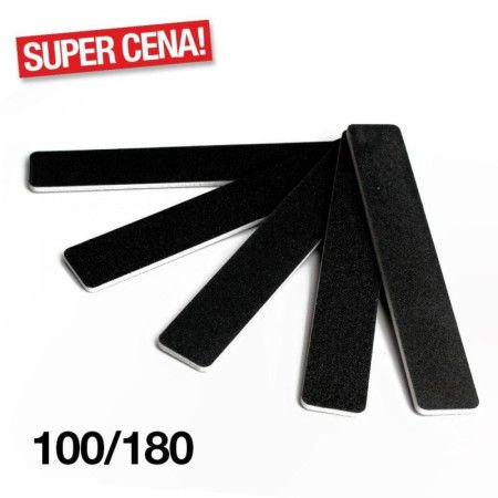Čierny hranatý kombinovaný pilník so zrnitosťou 100/180 je vhodný na upravenie a opracovanie už vymodelovaných nechtov,na prebrusovanie prechodu medzi tipom a prírodným nechtom. Zrnitosť 180 je jemnejšia, vhodná na konečné úpravy pri modelovaní a na zmatnenie nechtov.