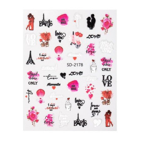 Samolepicí 5D valentýnské samolepky na nehty SD2178 s plastickým efektem dodají vaší manikúře hluboký a realistický vzhled. Ideální pro klasické laky, gelové laky a UV gely.