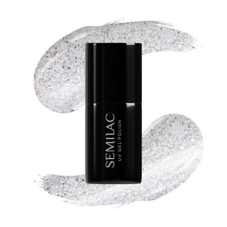 Semilac UV Gel Polish White Flash 7 ml – bílý transparentní gel lak se stříbrnými glitry FLASH efekt, který se pod světlem blesku krásně třpytí. Ideální pro zvýraznění jakéhokoli vzhledu.