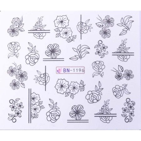 Vodolepky s motivy květin BN-1196 rychlé a krásné zdobení vodolepkami. Vodní samolepky mají motiv zobrazený na obrázku. Velmi snadné a efektivní použití.