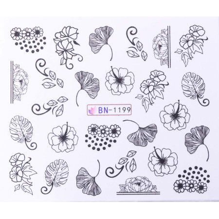 Vodolepky s motivy květin BN-1199 rychlé a krásné zdobení vodolepkami. Vodní samolepky mají motiv vyobrazený na obrázku. Velmi snadné a efektivní použití.
